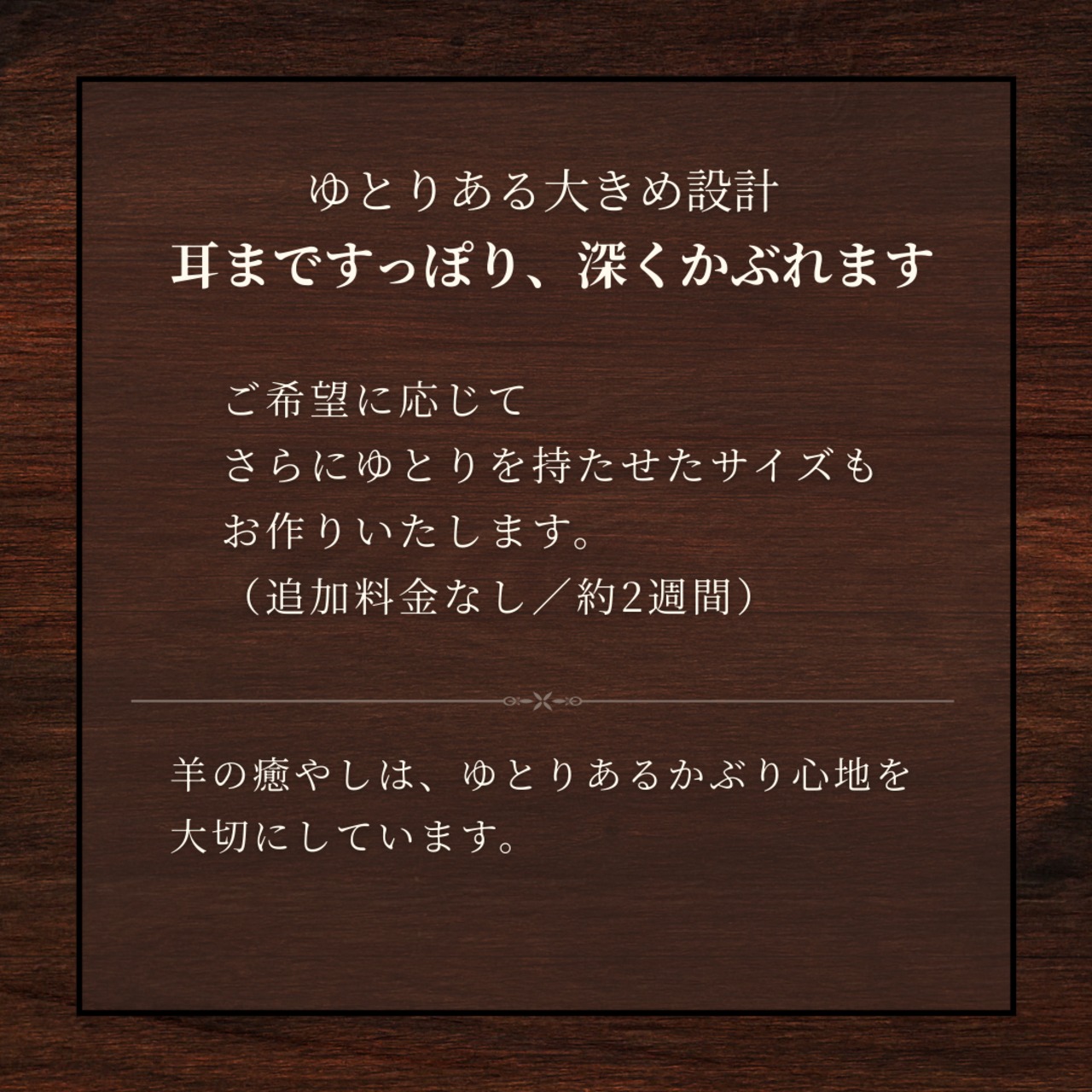 ◆大きめで耳まですっぽりと深めに被れるゆとり設計
