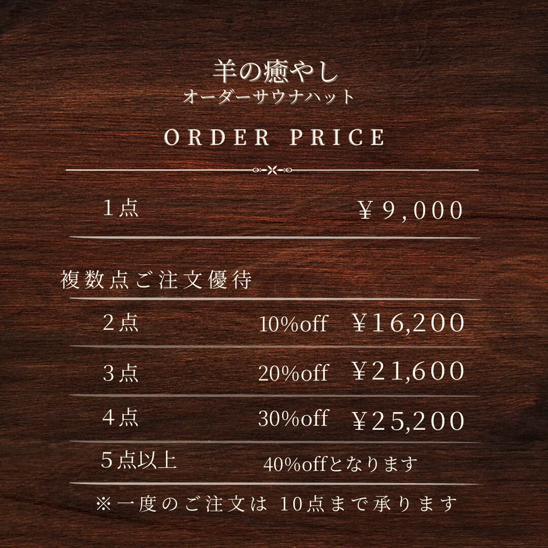 オーダーサウナハット 1点・・・¥9000