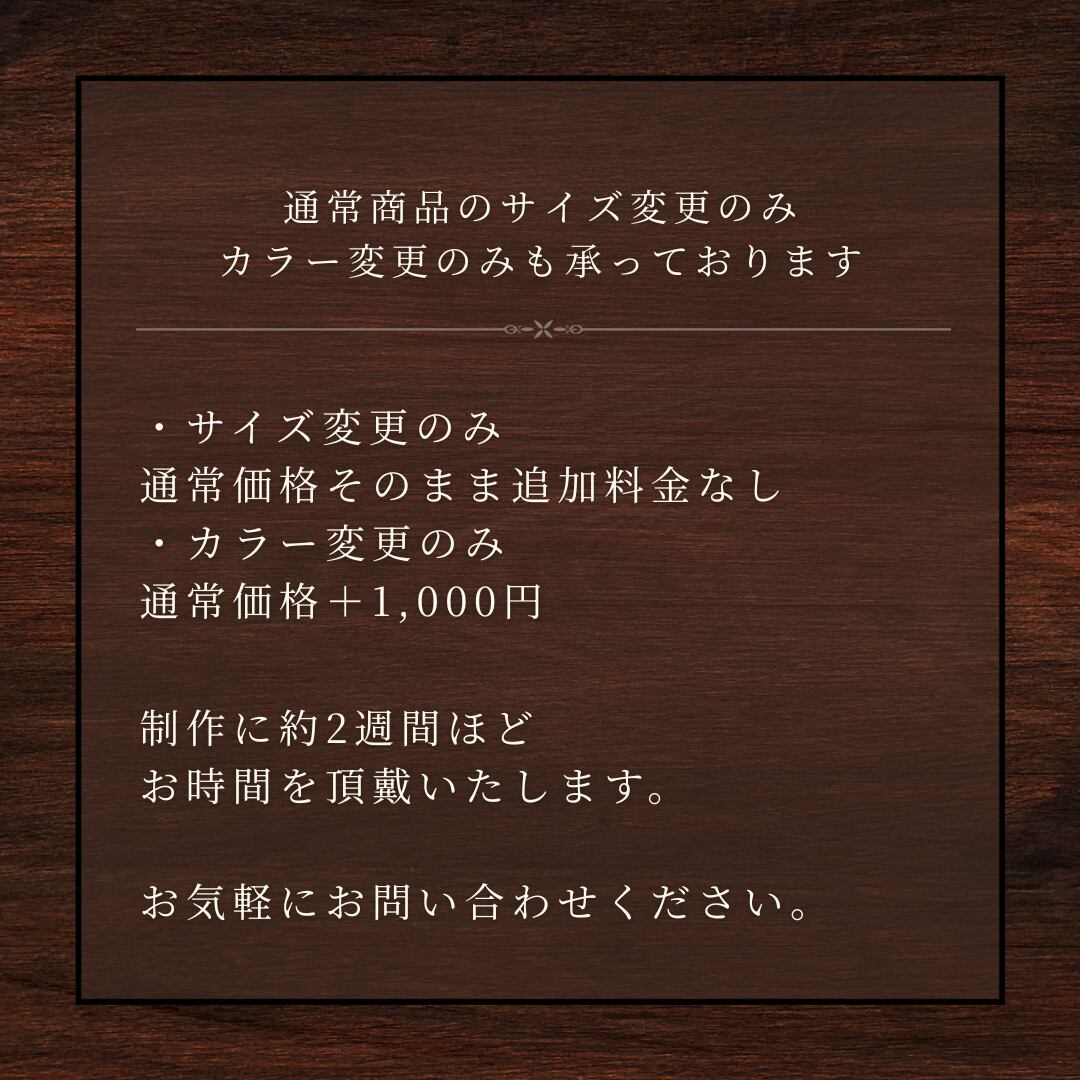 ※サイズ変更のみ(通常商品+追加料金なし)・カラー変更のみ(通常商品+1000円)も承っております。お気軽にお問い合わせ下さい