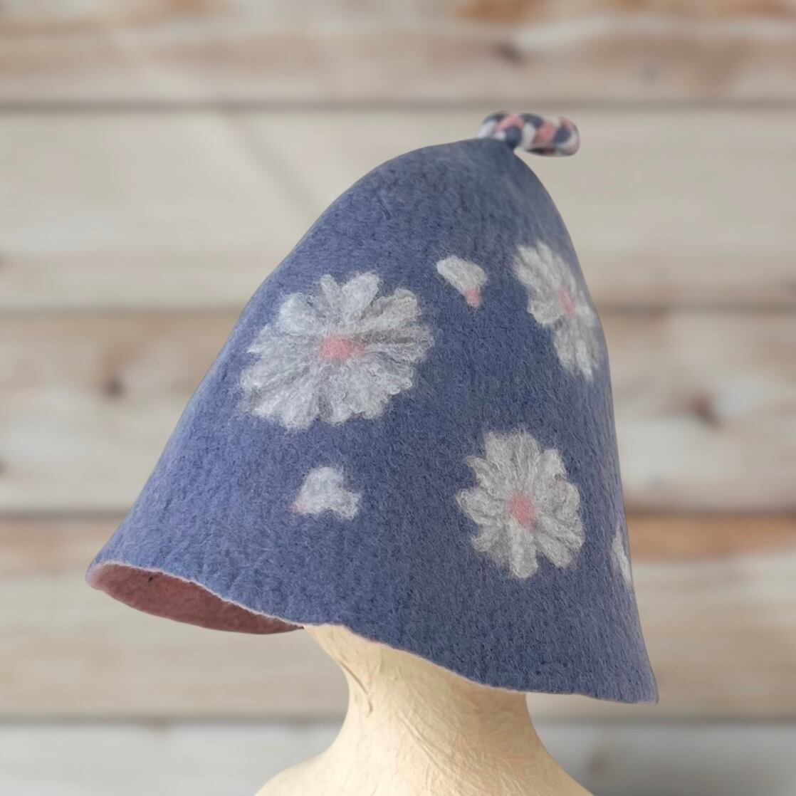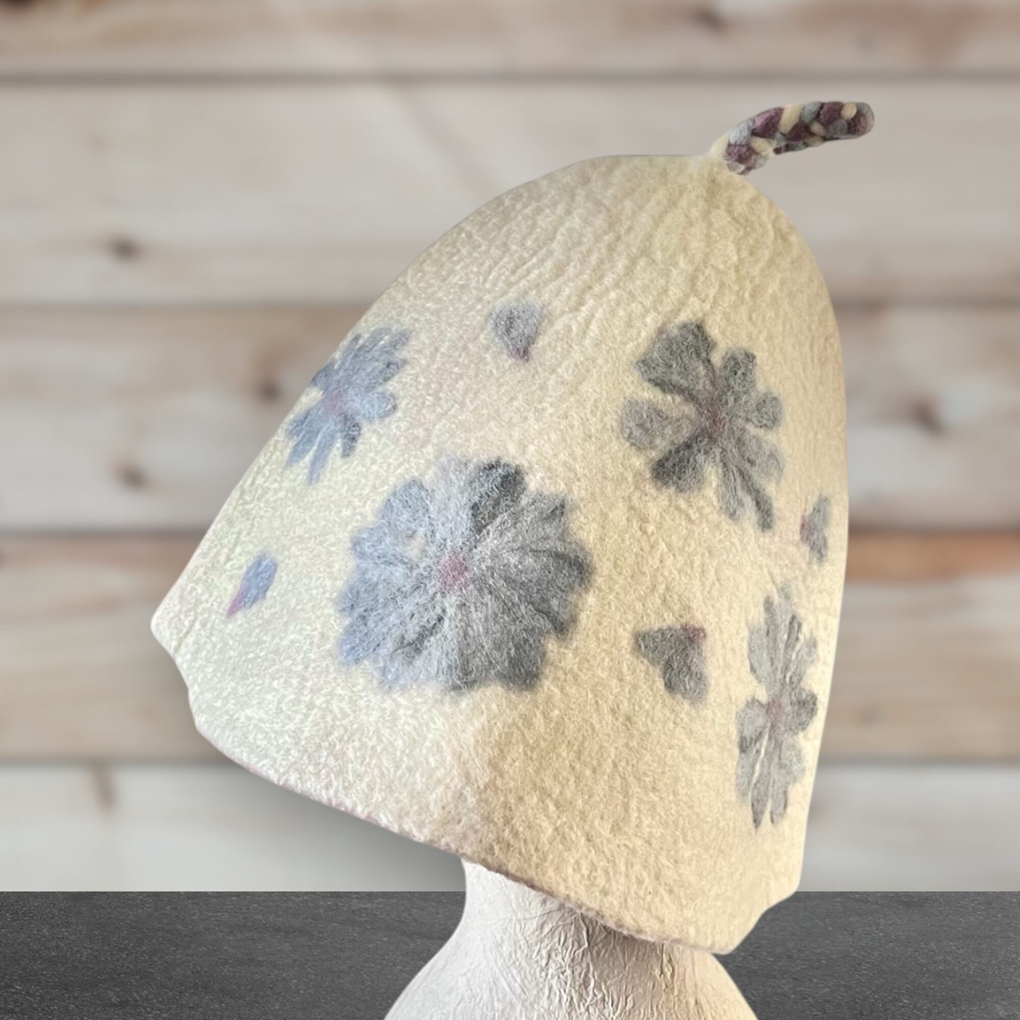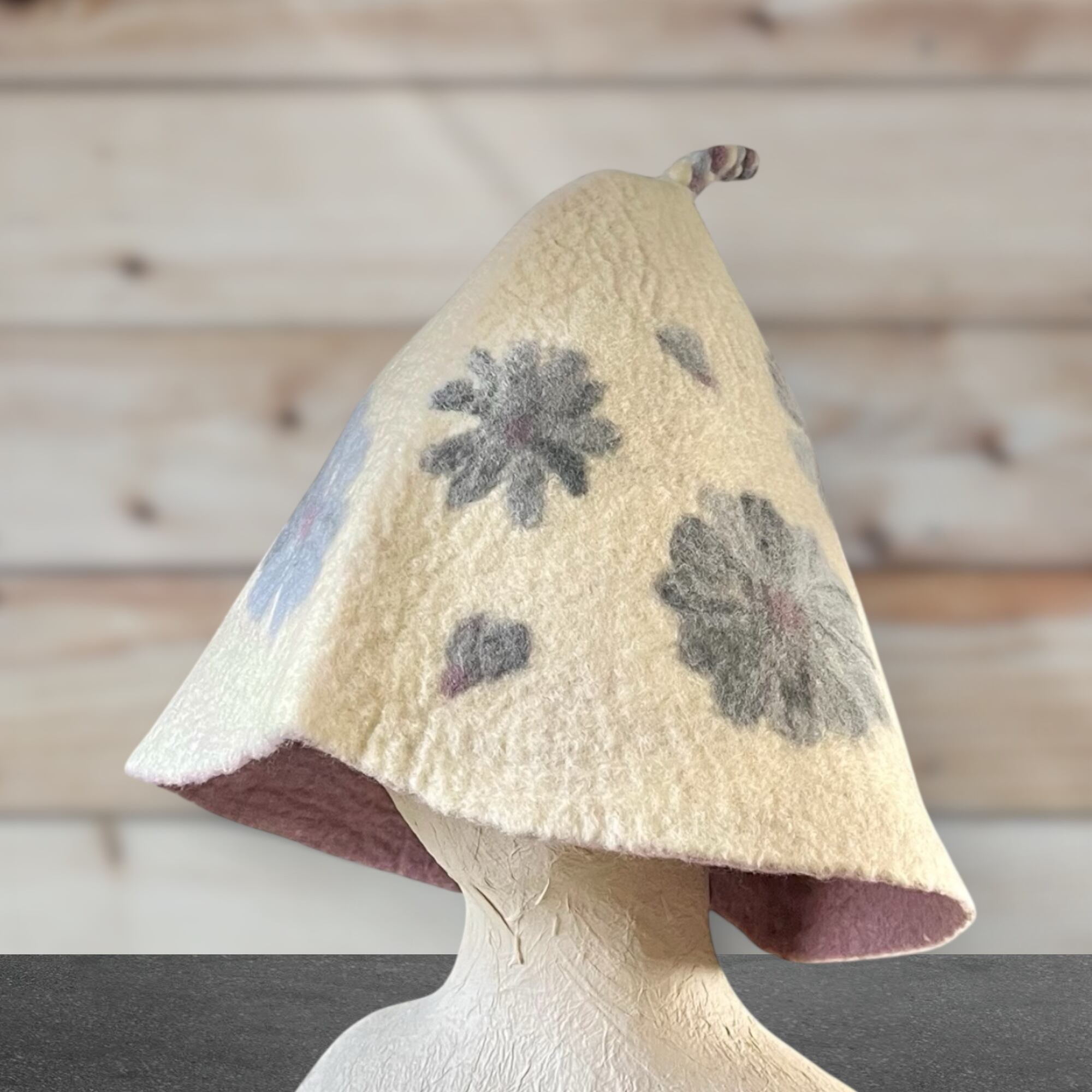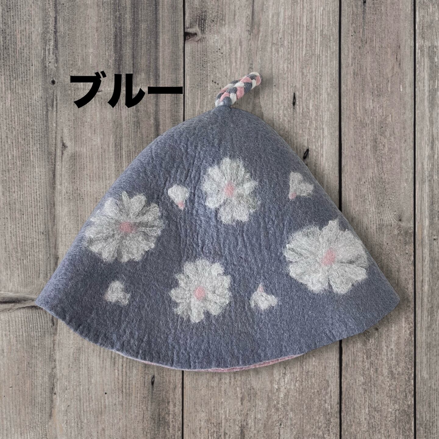 メリノウール100% フラワー柄サウナハット(大きめ・軽量)