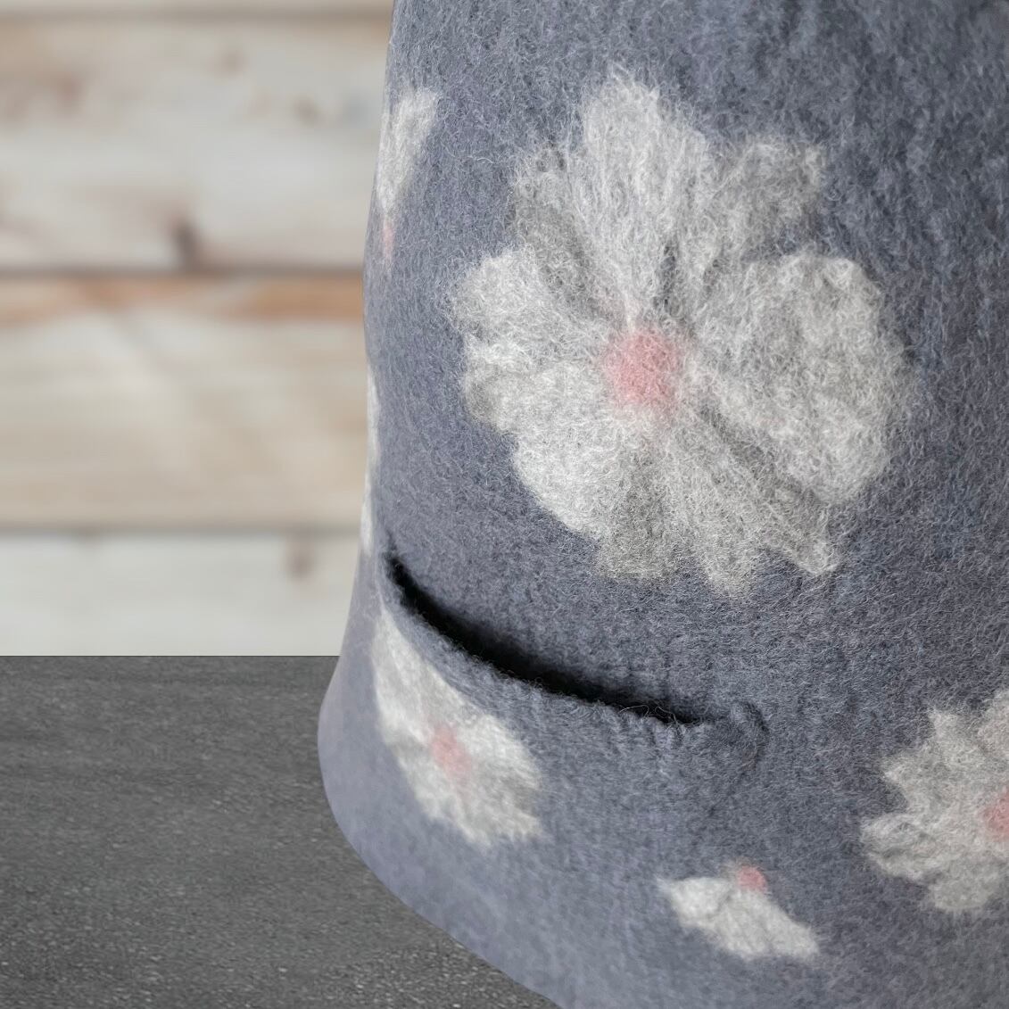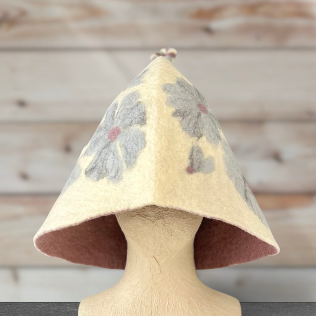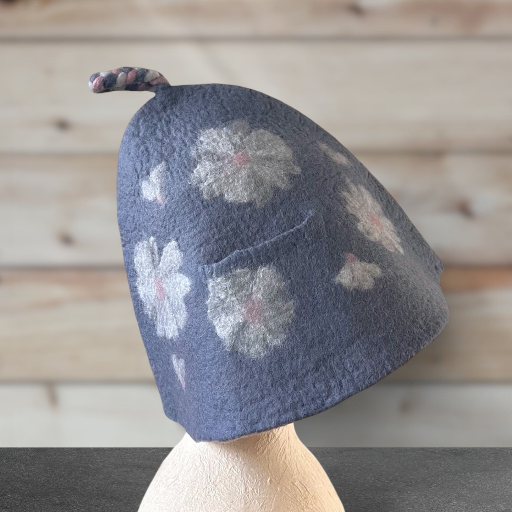 メリノウール100% フラワー柄サウナハット(大きめ・軽量)