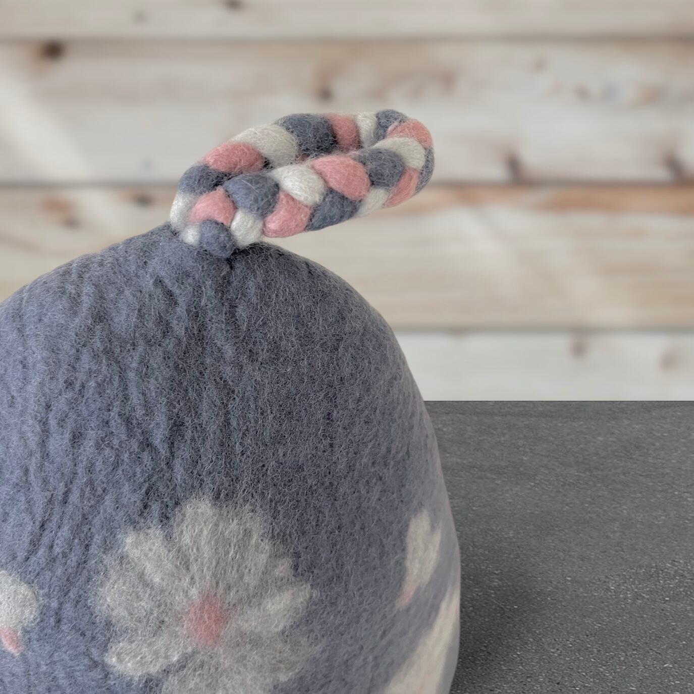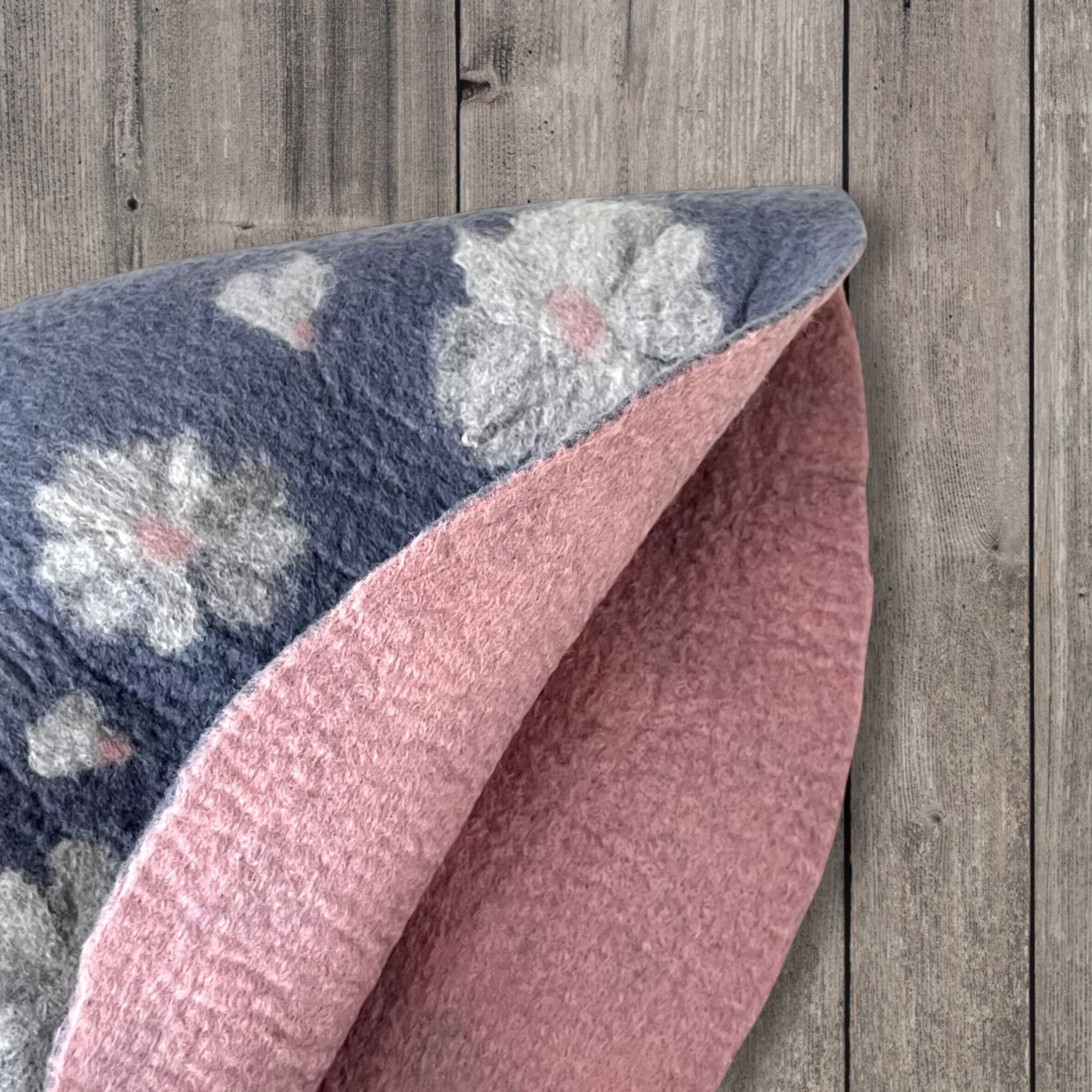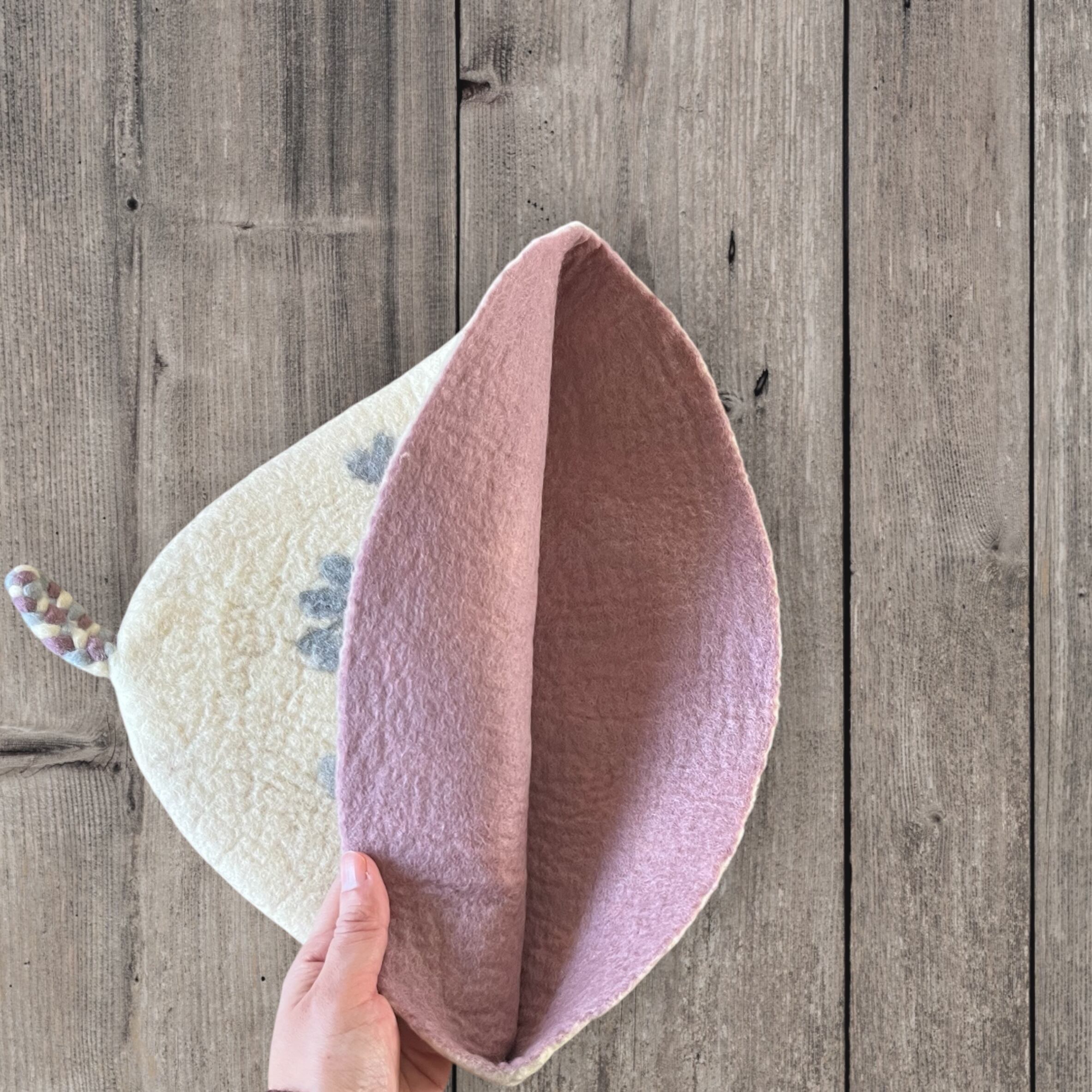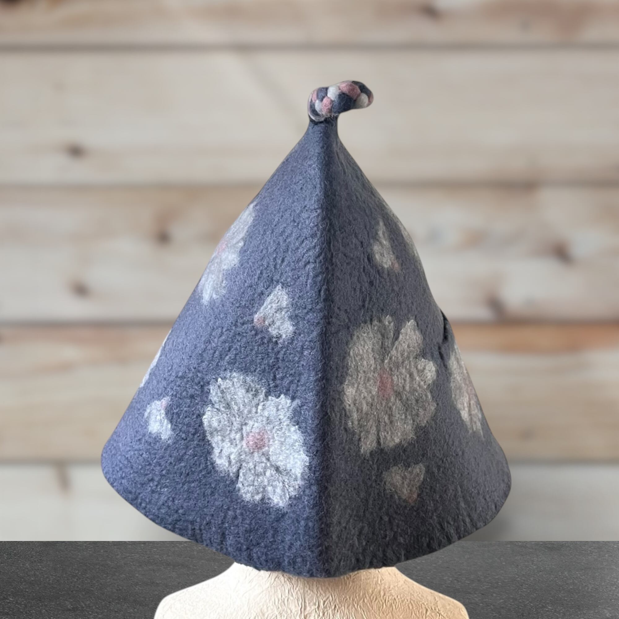 メリノウール100% フラワー柄サウナハット(大きめ・軽量)