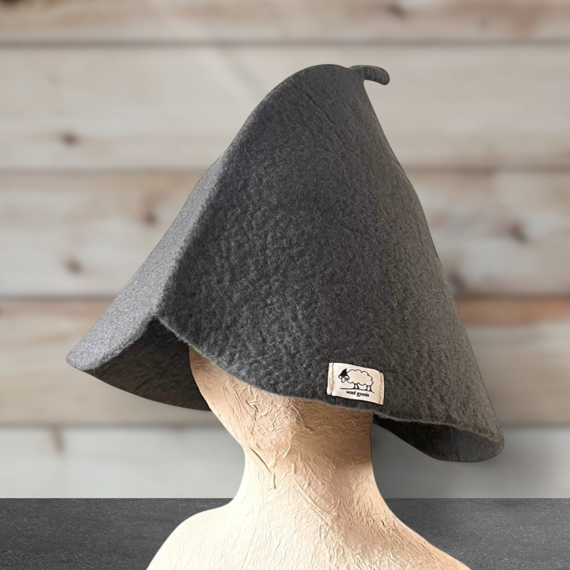 大きめ・軽量|メリノウール100%サウナハット(チャコールグレー)