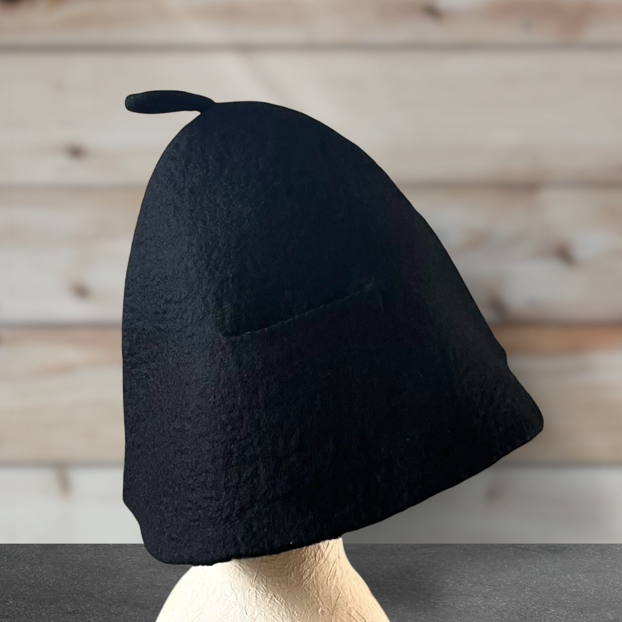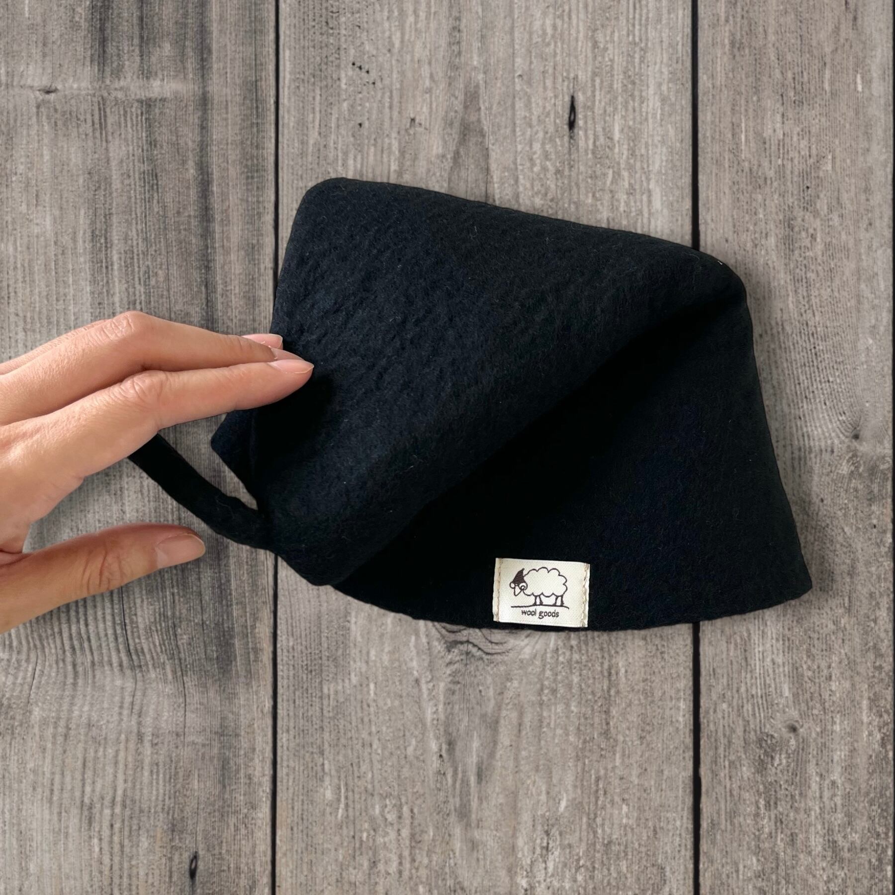 大きめ・軽量|メリノウール100%サウナハット(ブラック)