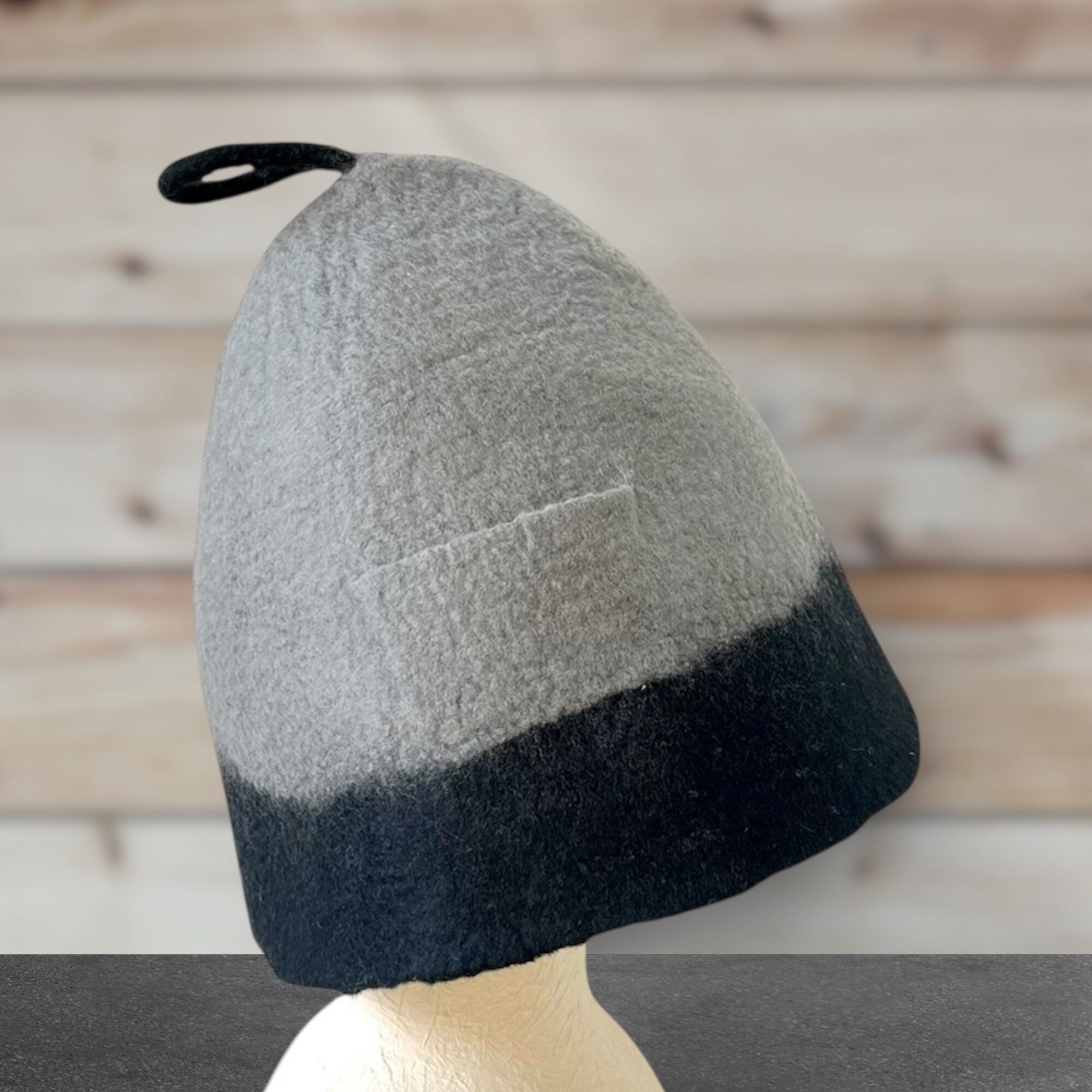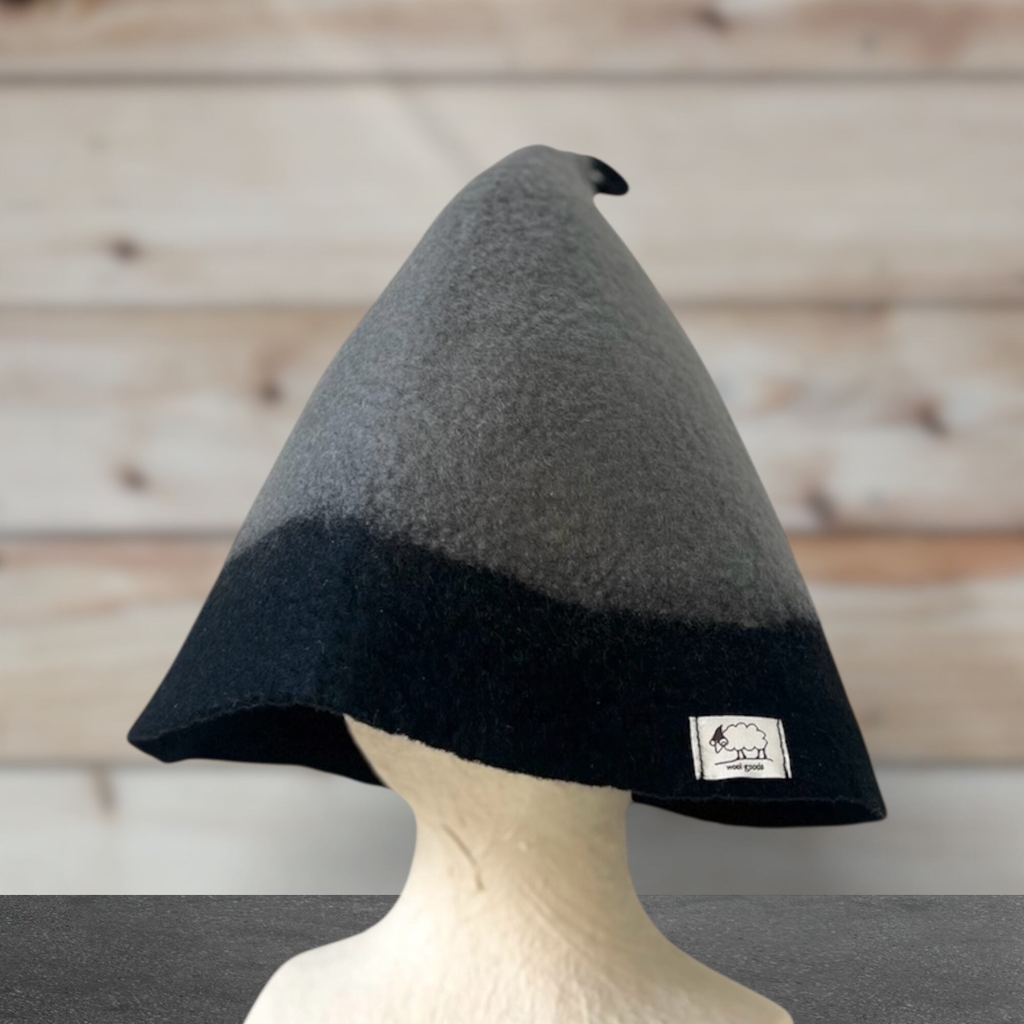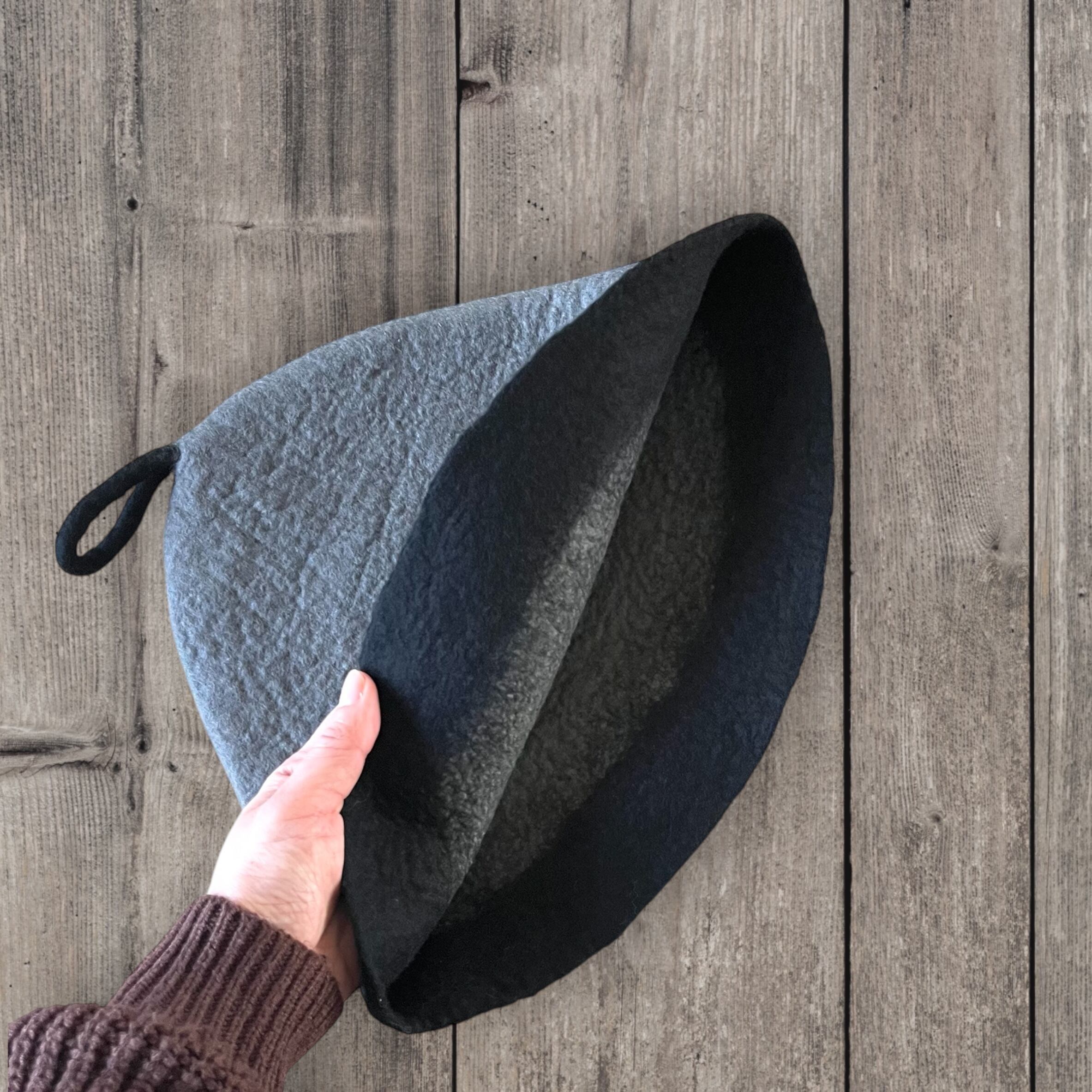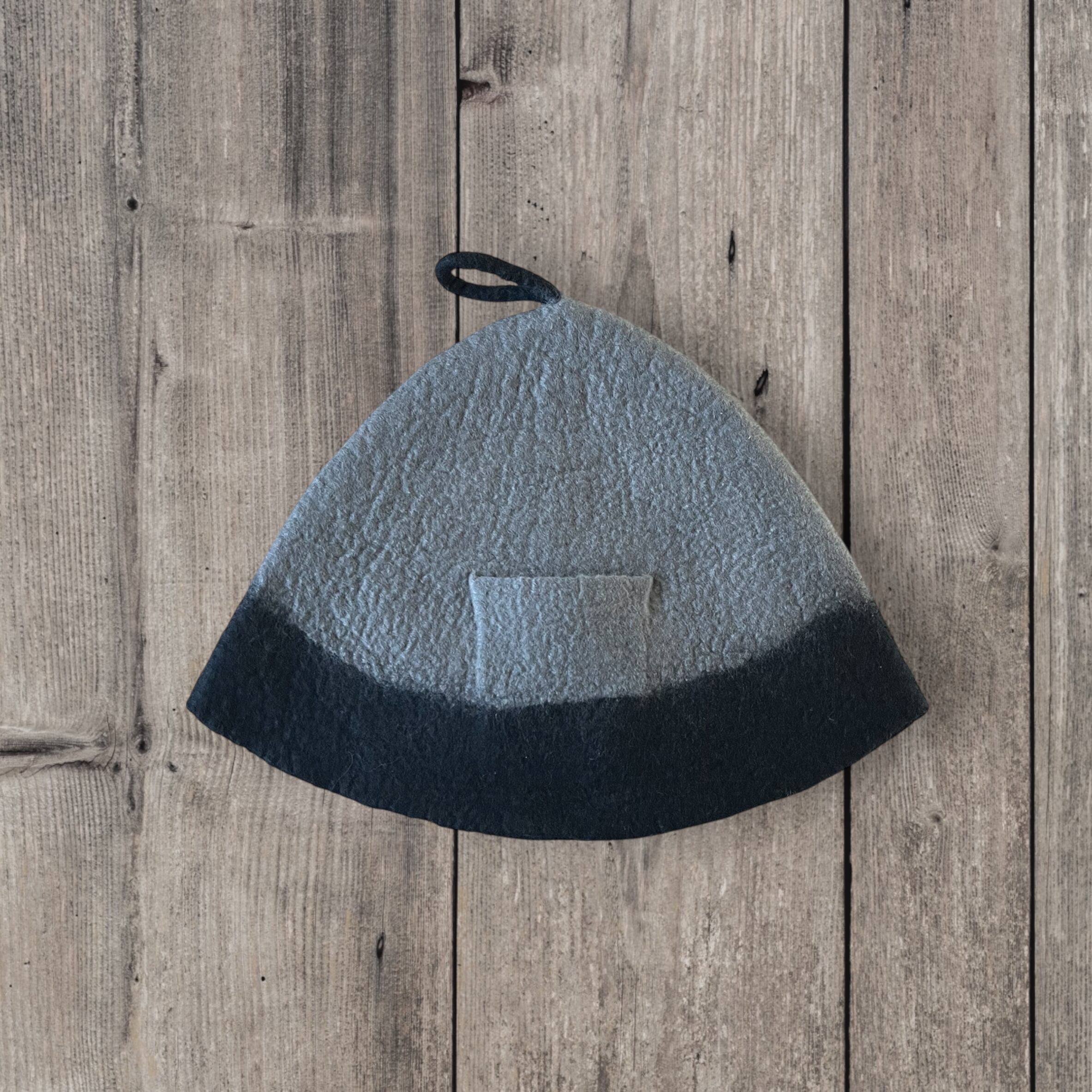 大きめ・軽量|メリノウール100%サウナハット グレーブラック